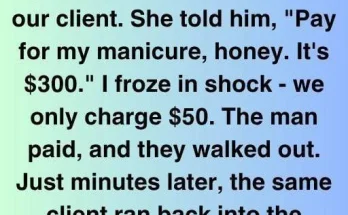 I work at a beauty salon. One day, a husband came in to pick up his wife, who was our client. She told him, “Pay for my manicure, honey. It’s …