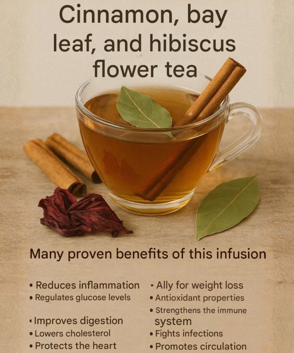 Cinnamon, bay leaf, and hibiscus flower tea is more than a comforting drink—it’s a natural tonic that supports your body from within. Add it to your daily routine to enjoy its anti-inflammatory, antioxidant, and heart-protective benefits while savoring its rich, aromatic taste.