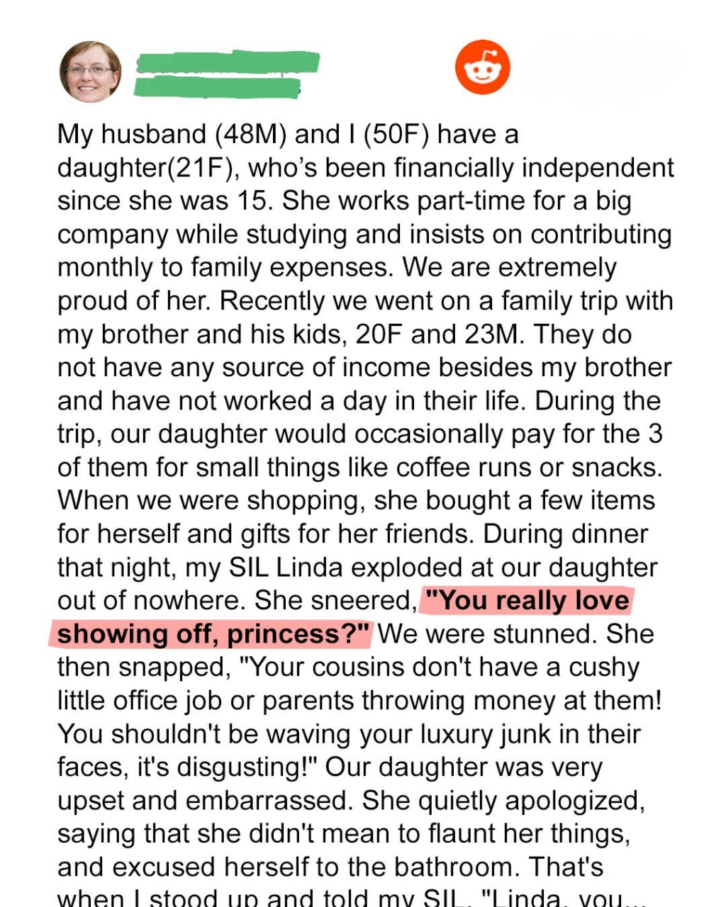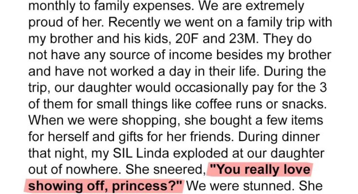 My daughter has been working since she was 15. She pays her own bills and has earned every milestone. But my sister-in-law couldn’t digest my girl’s success and called her a “spoiled little brat” in front of the whole family.