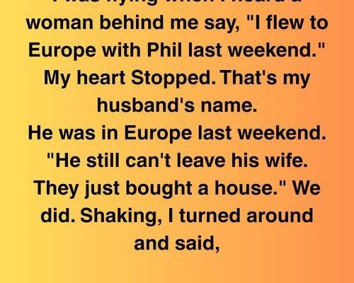“I was flying when I heard a woman behind me say, ‘I flew to Europe with Phil last weekend.’” My heart stopped. That’s my husband’s name. He was in Europe last weekend.