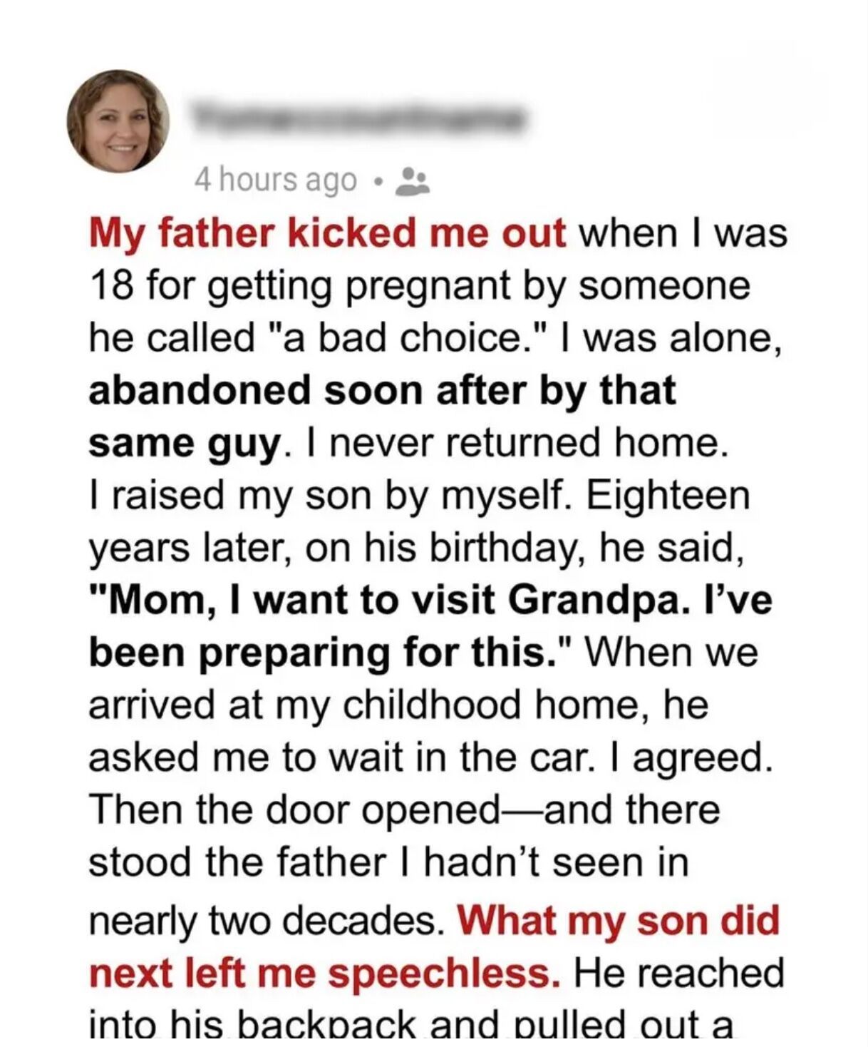 I swore I’d never be like my father. My son would always know love, always know he was wanted. He grew up, smart and kind, with a curious mind. When he was little, he’d sometimes ask, “Mom, why don’t I have a grandpa?” My heart would ache, but I’d always brush it off. “Some people just aren’t meant to be in your life, honey,” I’d say, trying to make my voice light. I was protecting him. Or maybe I was protecting myself, from the anger that still simmered deep down.