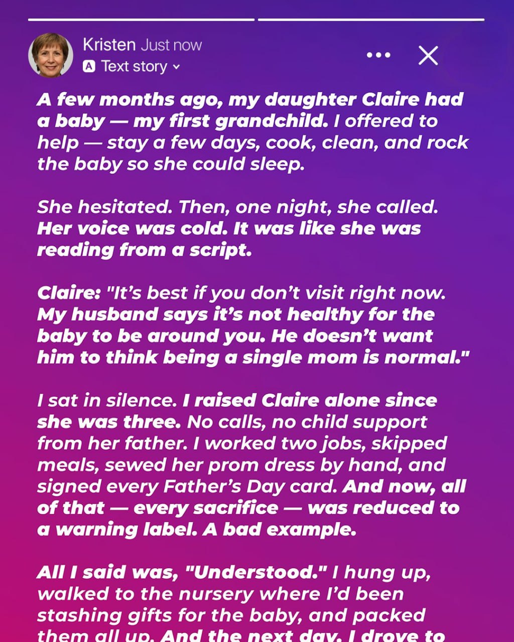 My heart is a permanent ache, a hollow throb where joy used to be. Every day is a struggle against the crushing weight of what I’ve lost. My daughter… she won’t let me see my grandchild. My beautiful, innocent grandchild. And the reason she gives me? It’s all because I’m a single mom.