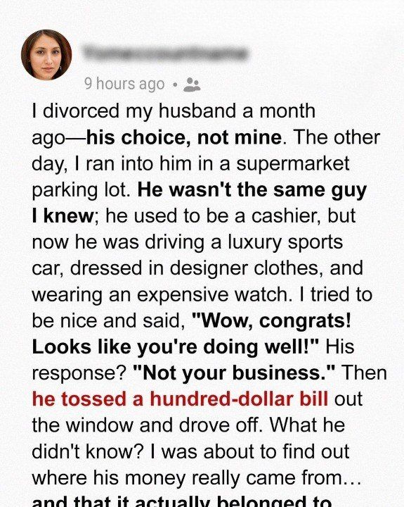 Most evenings, he came home exhausted from his cashier job at the grocery store, uniform still on. Money had never been a luxury for us. But now, here he was, stepping out of a car worth more than our entire marriage savings.