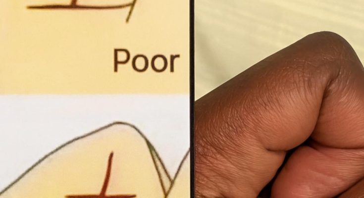 In this case, the image humorously or symbolically suggests that one’s financial status is written in the lines of their hand, a notion commonly found in folk wisdom.
