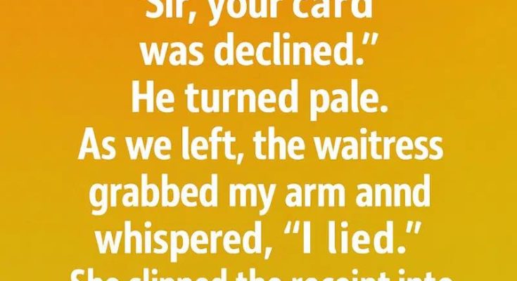 It turned out that the waitress had noticed my date’s discomfort and quietly paid the bill herself, sparing us from the embarrassment.