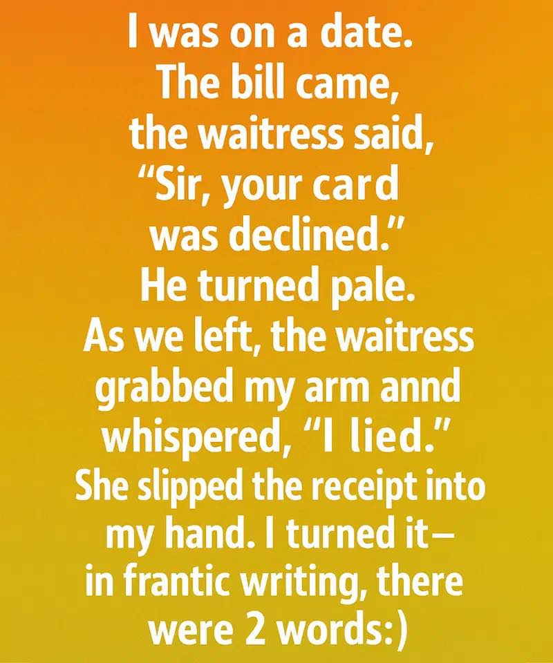 It turned out that the waitress had noticed my date’s discomfort and quietly paid the bill herself, sparing us from the embarrassment.