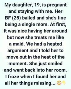 The argument escalated, and in a moment of frustration, I told her to move out the next day. She just smiled, said nothing, and went back into her room. The next morning, I froze.