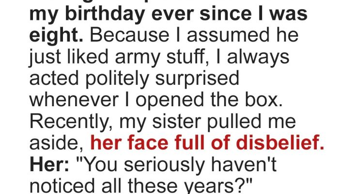 At the time, I figured it was just his quirky sense of humor. Maybe he thought boys liked army stuff.