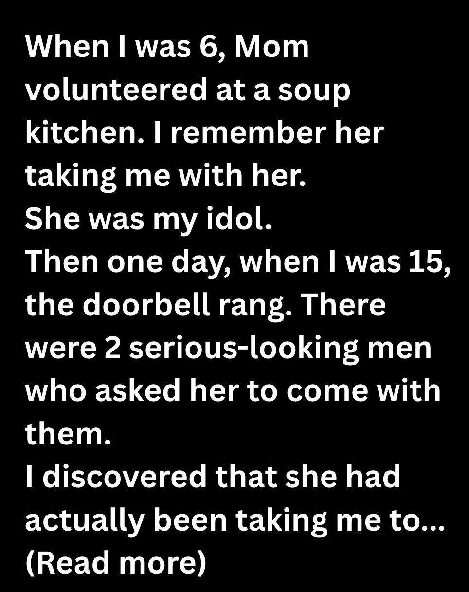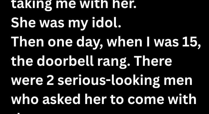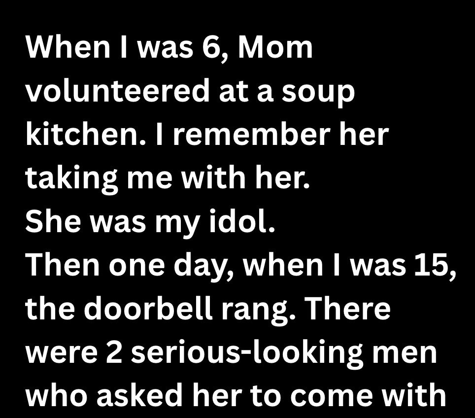 Two men stood there, serious-looking, their clothes too neat, their expressions too firm. Something about them made me uneasy right away. They asked for my mom.