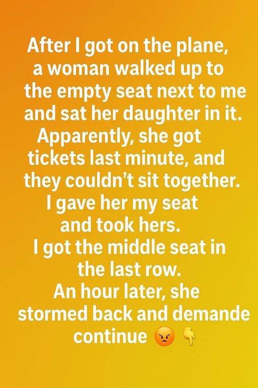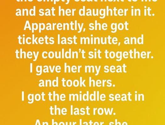 A sigh escaped me. The last thing I wanted was to move, to disrupt my carefully constructed bubble of despair. But they looked so tired, so hopeful. I nodded, forcing a weak smile. “Of course. No problem.” Just a few rows. What’s the difference? I gathered my small bag and moved, feeling a strange mix of annoyance and resignation.
