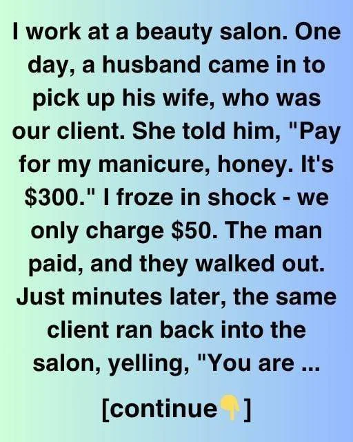 It’s $300.” I froze in shock—we only charge $50. The man paid, and they walked out. Just minutes later, the same client ran back into the salon, yelling, “You are a liar!”