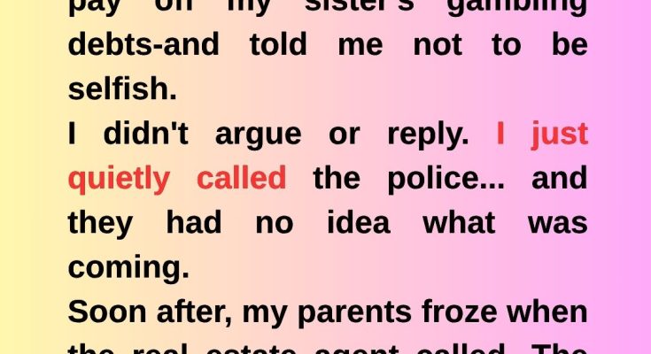 My parents emailed me while I was abroad on a business trip: they’d sold my seaside villa to pay off my sister’s gambling debts—and told me not to be selfish. I didn’t argue or reply. I just quietly called the police… and they had no idea what was coming. Soon after, my parents froze when the real estate agent called.