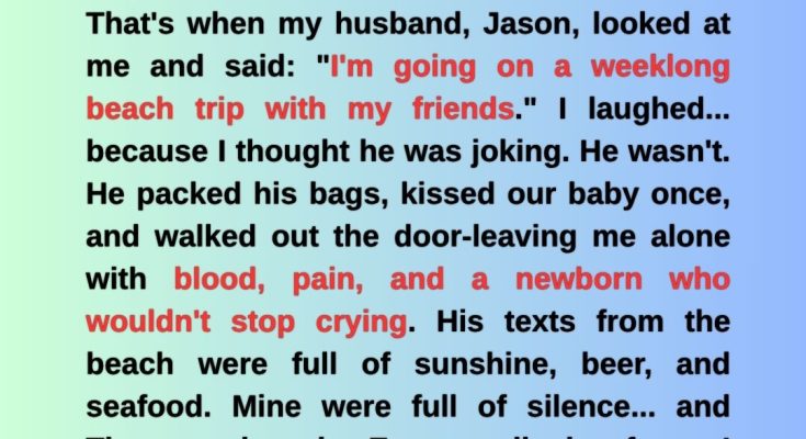 That’s when my husband, Jason, looked at me, leaning casually against the doorframe of the nursery as I rocked a screaming Emma, and said: “I’m going on a weeklong beach trip with my friends.”